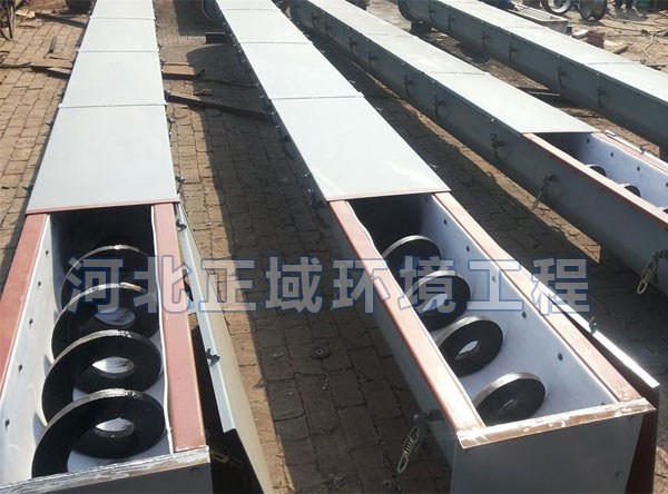 餐厨垃圾无轴螺旋输送机主要由驱动装置、头部装配、机壳、无轴螺旋体、槽体衬板、进料口、出料口、机盖(需要时)、底座等组成。